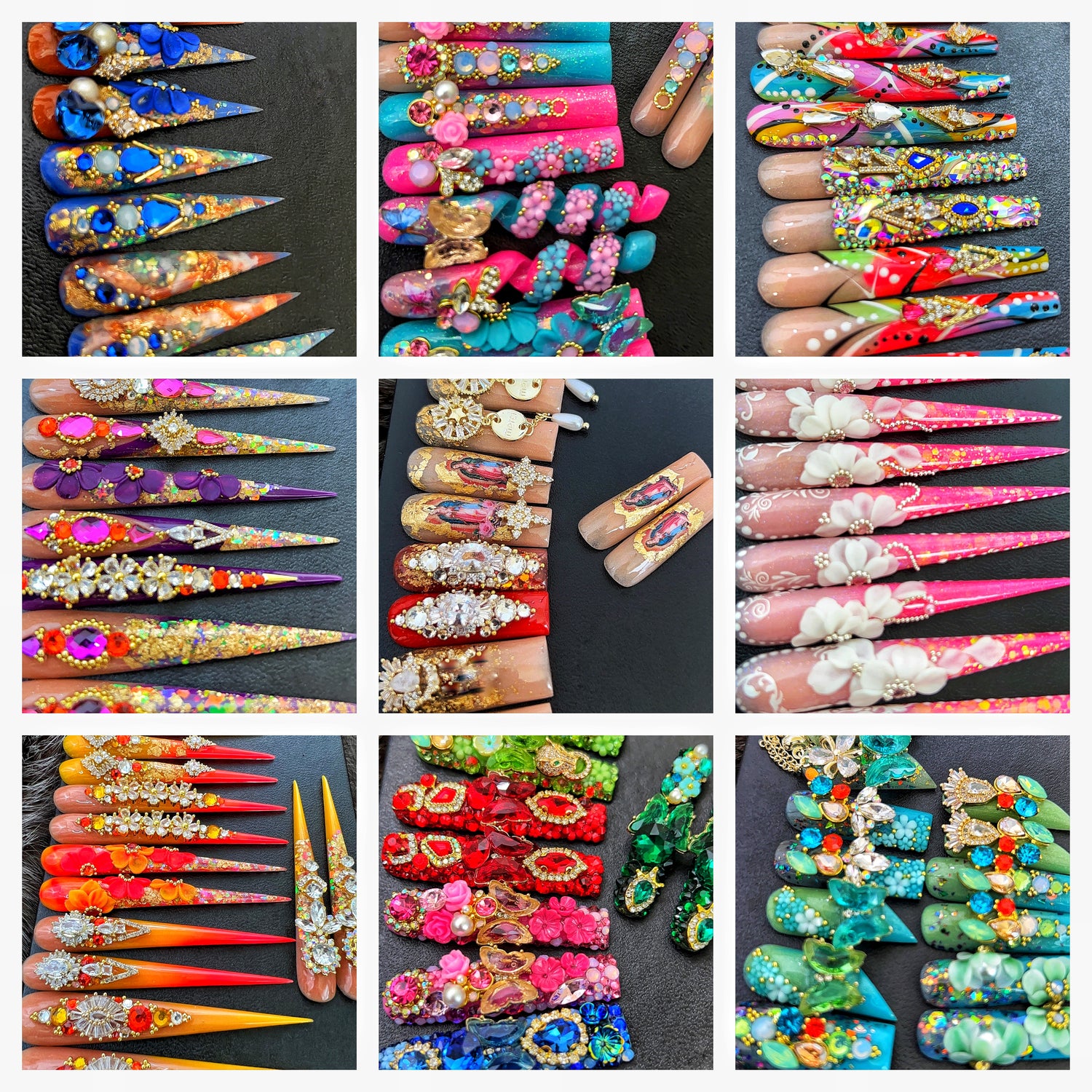 "These nails here were made for the GODS. I love it. Never seen nails like these and the picture don't do it no justice. Everybody notice my nails weather they were near or far hunny.She is such a talented nail artist. Anyone who is scare to buy, you have to make your move, you will be lock in with her after that."